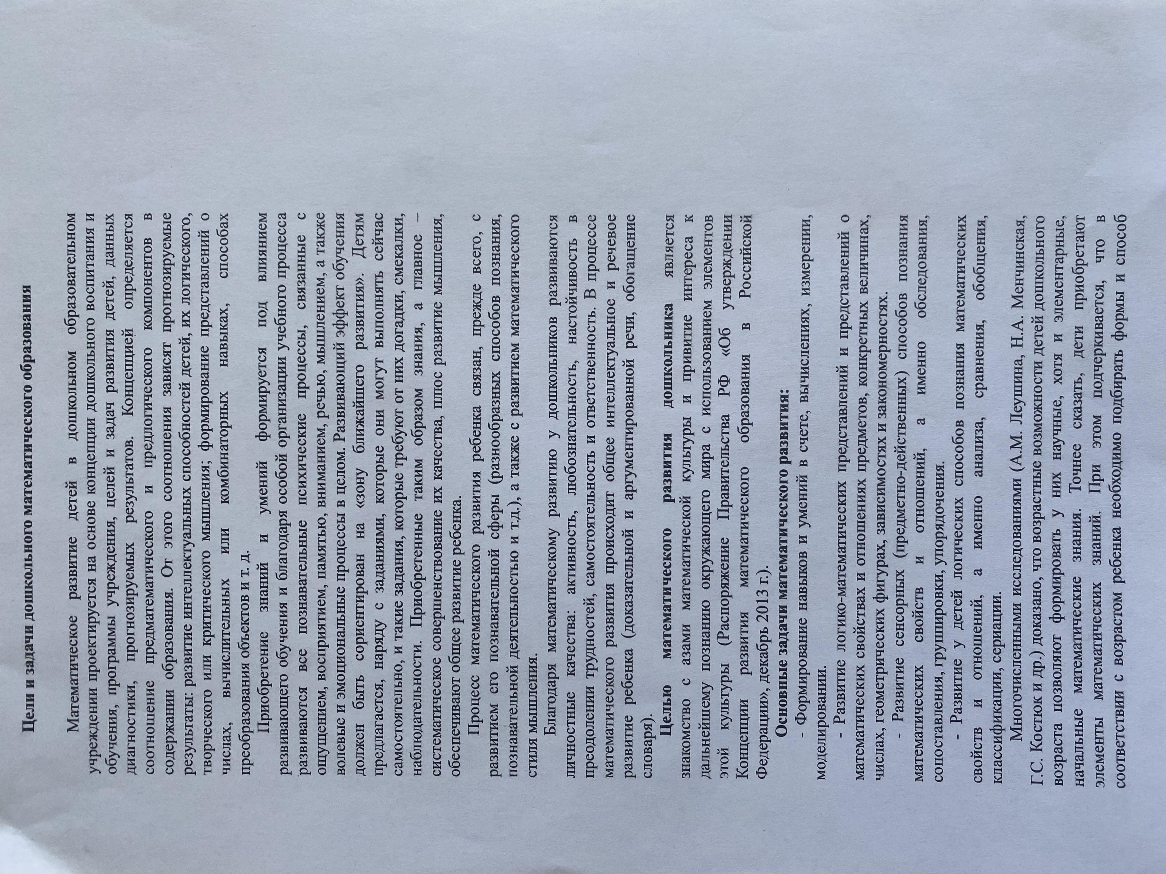 Цели и задачи дошкольного математического образования